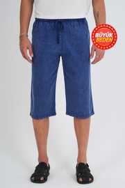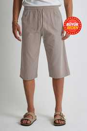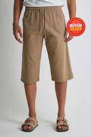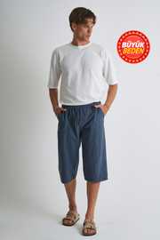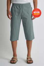 Büyük Beden %100 Organik Pamuk Keten Görünümlü Rahat Kapri