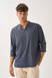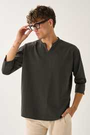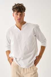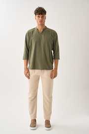 Erkek Fakir Kol V Yaka Rahat Kalıp %100 Pamuk Gömlek