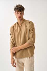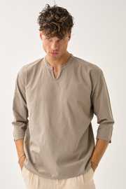 Dechers Toprak Erkek Fakir Kol V Yaka Rahat Kalıp %100 Pamuk Gömlek E211