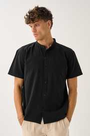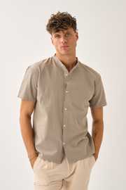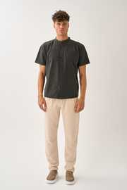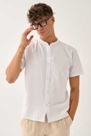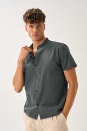 Yazlık erkek gömlek modelleri arasında öne çıkan bu hakim yaka kısa kollu gömlek, %100 doğal pamuktan üretilmiştir.