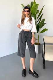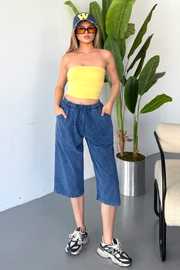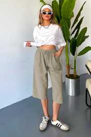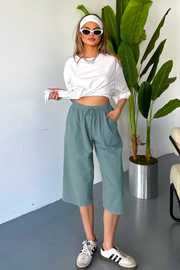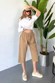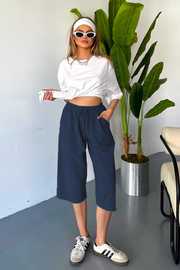 İnce Beli Lastikli Keten Görünümlü %100 Pamuk Kapri – Rahat ve Şık!